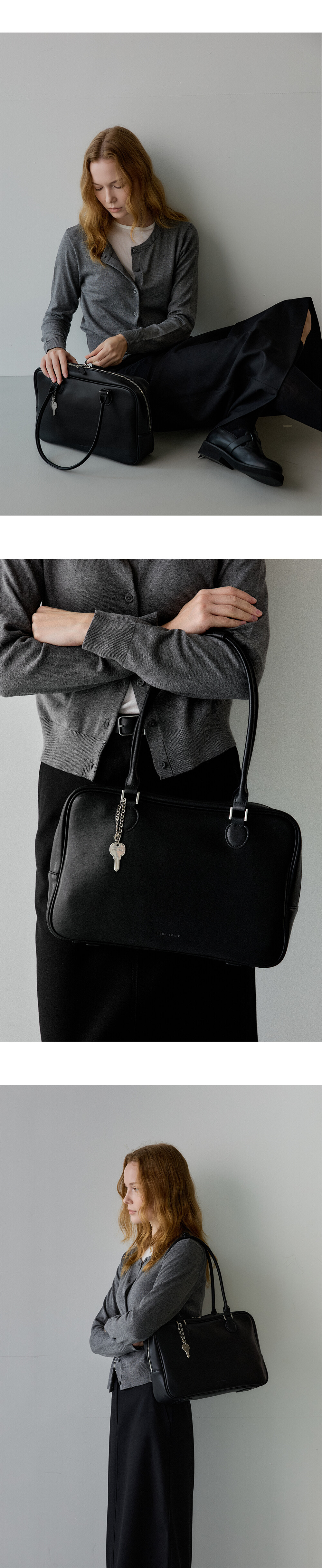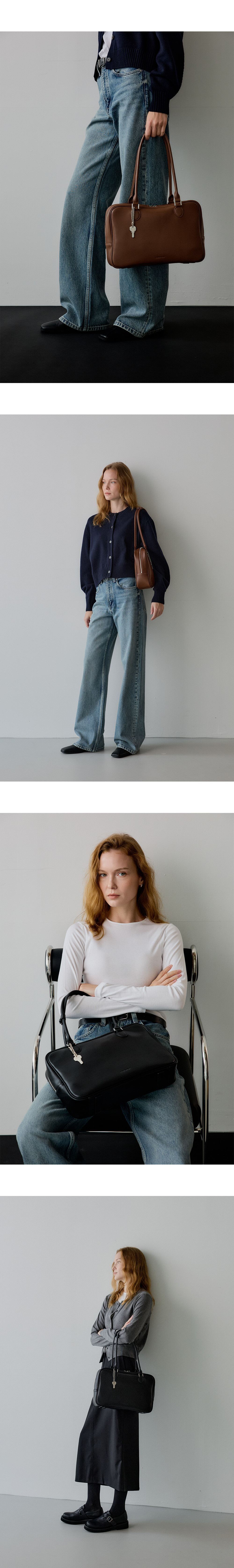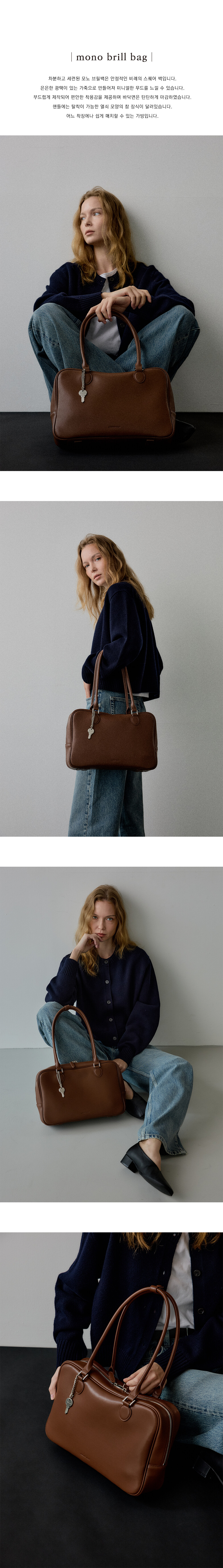 차분하고 세련된 모노 브릴백은 안정적인 비례의 스퀘어 백입니다.
