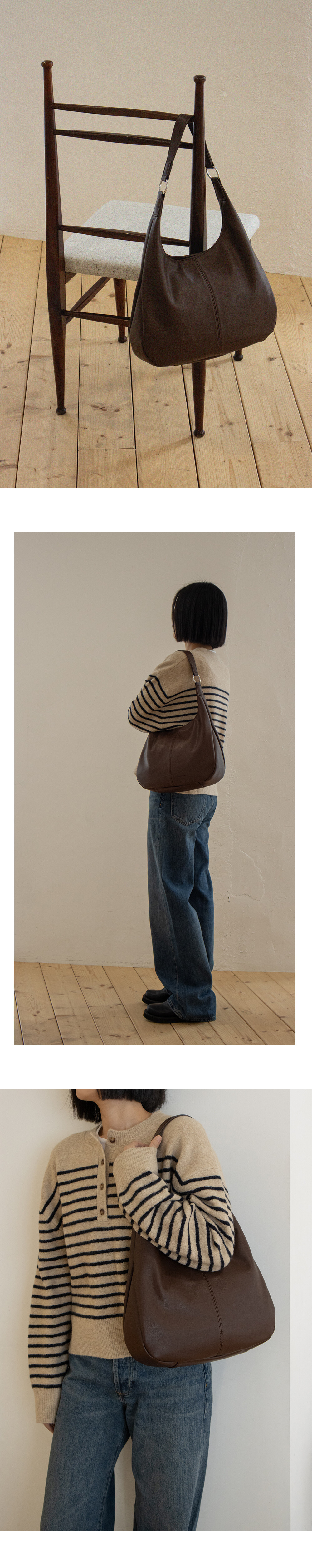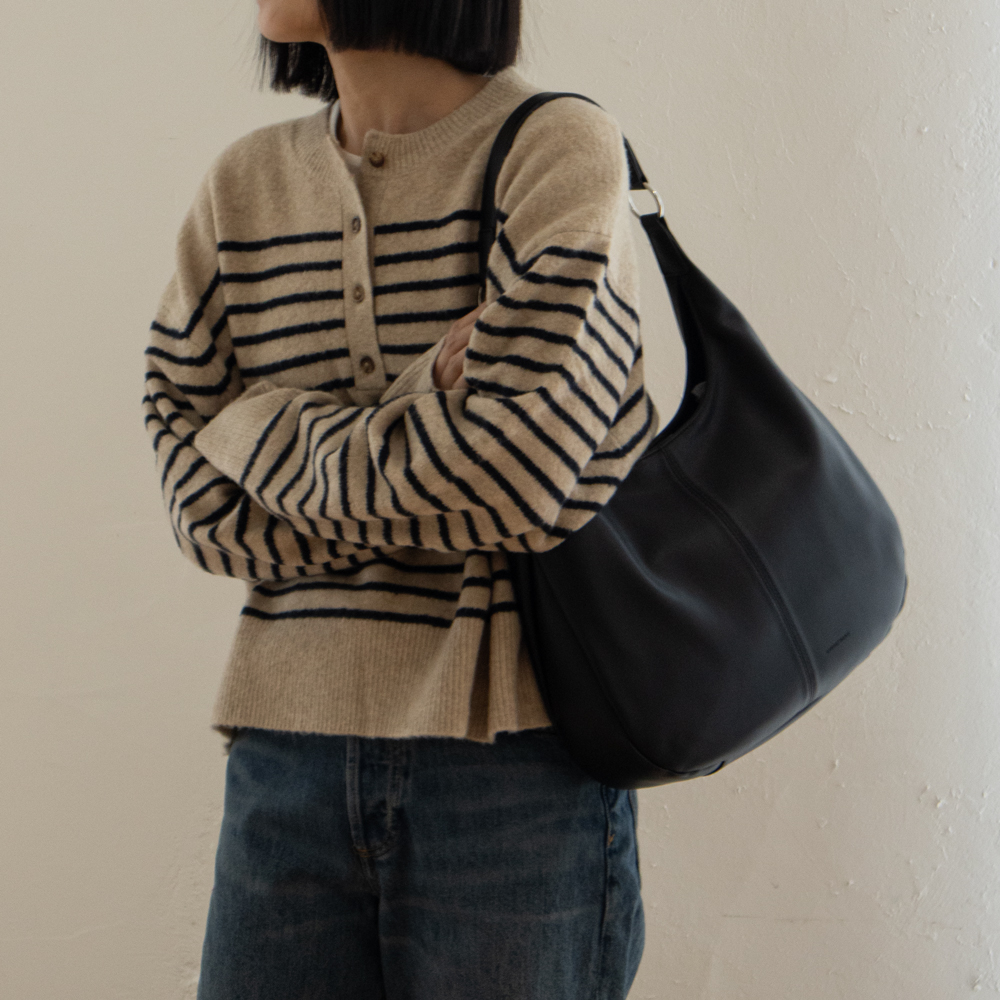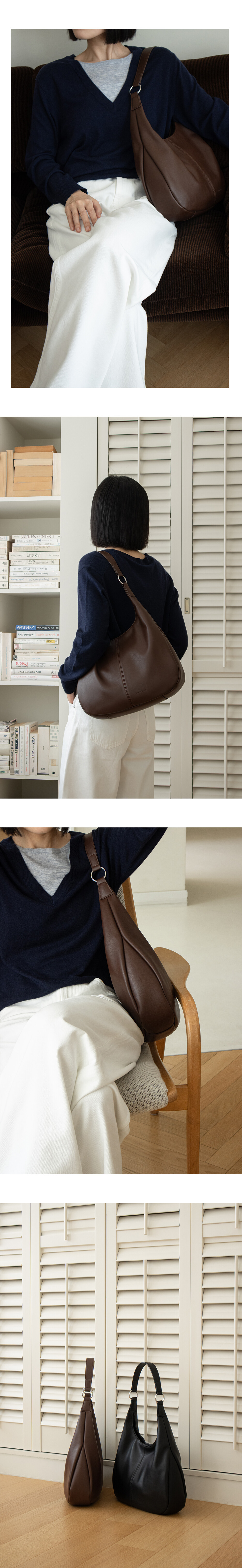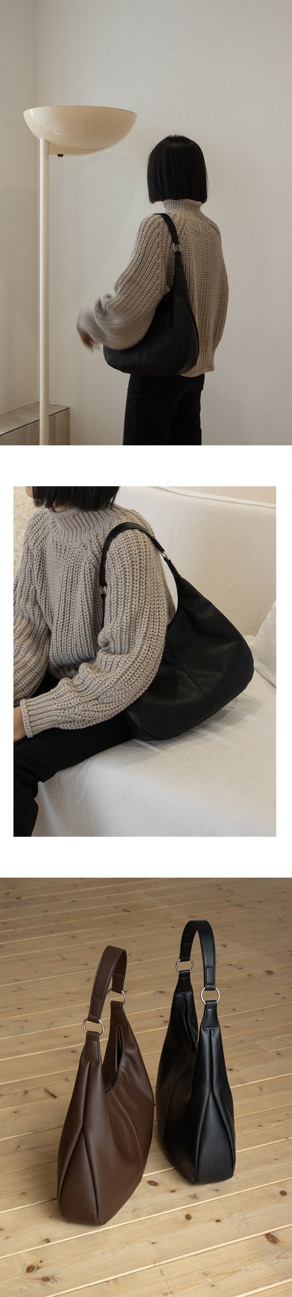 오비엔 호보백은 둥근 형태와 절개 디테일이 조화를 이루는 가방입니다. 측면의 패턴이 입체적인 실루엣을 완성하며 오링 장식이 포인트가 되어 줍니다.