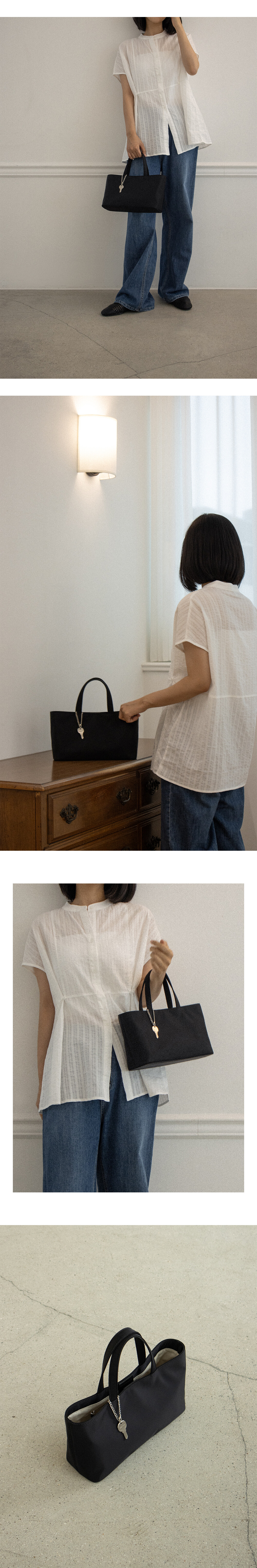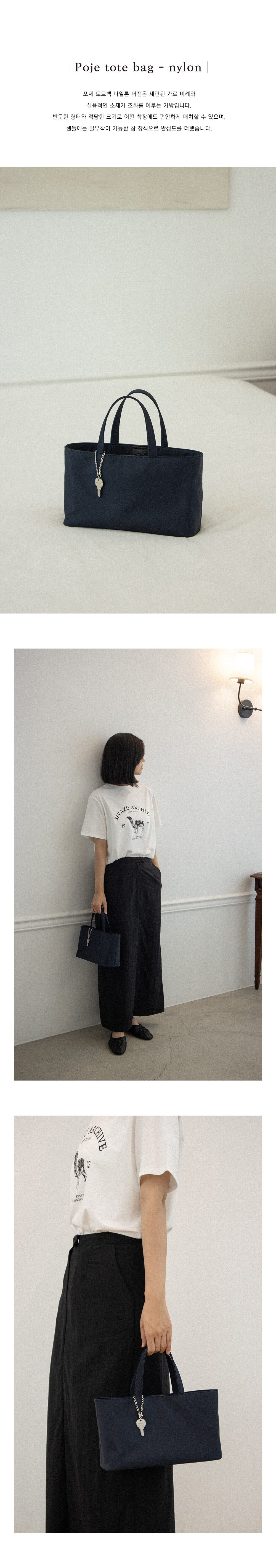 포제 토트백 나일론 버전은 세련된 가로 비례와 실용적인 소재가 조화를 이루는 가방입니다.