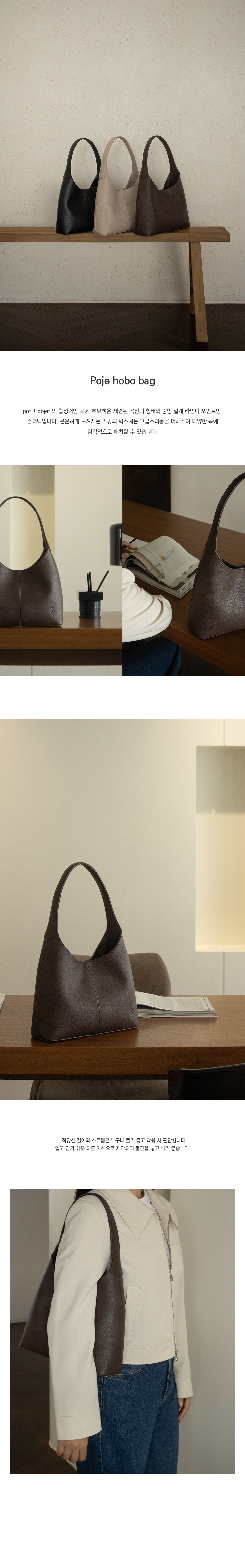 pot + objet 의 합성어인 포제 호보백은 세련된 곡선의 형태와 중앙 절개 라인이 포인트인 숄더백입니다. 은은하게 느껴지는 가방의 텍스쳐는 고급스러움을 더해주며 다양한 룩에 감각적으로 매치할 수 있습니다.
